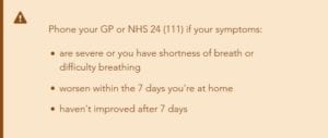 The NHS Inform website has been updated and contains all the relevant advice regarding travel, symptoms and self-isolation. It still also has the useful self-assessment guide and we would highly recommend it as the first port of call if you are concerned: