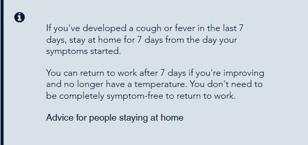 We are sure you will all be aware that the UK Government announced guidance regarding self-isolating for 7 days if you develop cough or fever (pictured). Please note – you will NOT need a “doctor’s note” saying you are fit to go back; your employer has no right to demand this and should be showing some understanding during a national crisis.